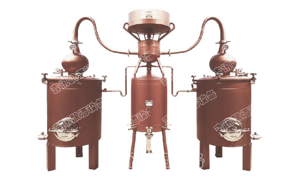 屬雙釜單次蒸餾機(jī)組,融合了白蘭地蒸餾器串釜蒸餾與果皮渣蒸餾機(jī)組分流盤冷凝冷卻和夏朗德蒸餾器球形回流精餾之獨特優(yōu)點。